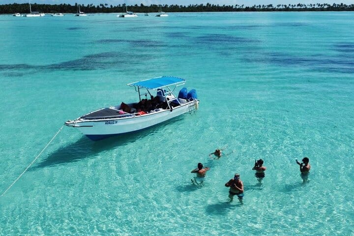 Luxury transportation from your accommodation to the island, ensuring a comfortable and timely start to your adventure. Scenic sailing on a catamaran or , offering a festive atmosphere with music and drinks. Stop at the natural pool with starfish, where guests can observe these marine life creatures in their natural habitat. Relaxation on pristine beaches and swimming in the island's clear waters, perfect for unwinding and enjoying the Caribbean sun. Traditional Dominican BBQ lunch served buffet style, providing a taste of local cuisine. These elements combine to create a memorable and enjoyable experience on Saona Island, making it a must visit destination for travelers seeking a tropical escape